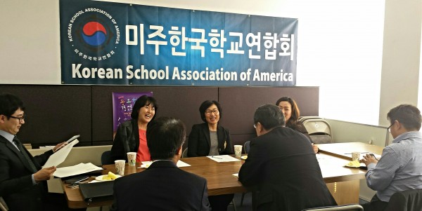 .사진 왼쪽부터 동북아 역사재단 황성준 행정원, LA 총영사관 김종한 영사, 김숙영 부회장, 동북아 역사재단 이현주 사무총장, 신영숙 회장, 동북아 역사재단 이장욱 연구위원, 임난희 부회장, 구성순 임원
