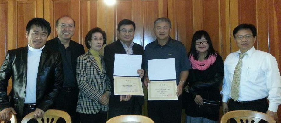 앞줄 좌로부터 이교식 이사, 이강원 이사장, 안진 부이사장, 김영배 이사, 이선주 이사, 수지오 이사, 주정수 재무이사