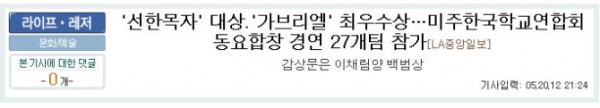 '선한목자' 대상.'가브리엘' 최우수상…미주한국학교연합회 동요합창 경연 27개팀 참가 > 언론보도