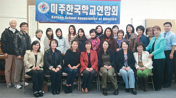 미주한국학교연합회(회장 최정인)는 지난 2일 뉴멕시코 한국학교연합회를 찾아 교사연수를 실시했다. 이날 교사연수에는 현지 한국학교 교사 35명이 참석, 교과서 사용법, 학생지도법 등을 정보를 습득했다. 뉴멕시코 지역협회장에는 신미경씨가 추대됐다. 최정인 회장과 현지 교사들이 기념촬영을 하고 있다.