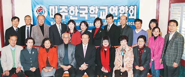 미주한국학교연합회(회장 최정인)는 지난 11일 만리장성에서 2013년 임원진 및 역대 회장단 상견례 모임을 가졌다. 이날 임원진들은 각 지역 주말 한국학교 발전 방안을 논의하며 체계적인 활동을 다짐했다. 또한 미주한국학교연합회 30년사도 편찬하기로 했다. 최정인(뒷줄 왼쪽 다섯 번째) 회장과 임원진, 역대 회장들이 활짝 웃고 있다.