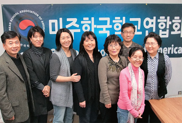▲ 미주한국학교연합회 최정인 회장(왼쪽 네 번째)과 임원들이 지난 24일 정기임원회를 갖고 창립 30주년을 기념하며 한인사회에 변함없는 후원을 부탁하고 있다.