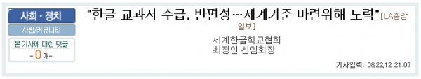 최 회장은 특히 "각 지역 회의에서 공통적으로 지적된 교과서 수급 문제를 개선하는 데 힘쓸 것"이라며 "미주 한국학교 연합회에서 개발한 레벨 테스트도 공유해 공통적인 반편성 기준을 제공할 계획"이라고 밝혔다.
