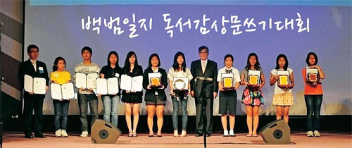 김구재단 공동 2세들에 무료 배부 백범일지를 무료 배부 중인 김구재 단이 남가주 한인 청소년들의 민족정 신을 일깨운다. 미주한국학교연합회(회장 최정인) 와 한국 김구재단(이사장 김호연)은 올해 미주 한인 청소년을 대상으로 한 ‘2012 백범일지 독서감상문 대회’ 성공에 힘입어 매년 대회를 공동 개 최한다고 밝혔다. 김구재단은 백범일 지 독서감상문 대회에 필요한 책과 재정을 지원하고 미주한국학교연합 회는 남가주 전역 한국학교 백범일지 배부와 행사를 주관한다. 미주한국학교연합회에 따르면 김 구재단 이사진은 지난 7월 LA에서 열린 시상식에서 행사 지원을 적극 약속했다. 김호연 이사장은 올해 처 음 열린 독서감상문 미주대회 응모 결과, 한인 청소년 수백명이 백범일지 를 읽고 민족 사랑을 이야기한 모습 에 감동받았다는 후문이다. 결국 김 구재단은 당초 한 차례 추진하려던 백범일지 독서감상문 미주대회를 연 례 행사로 확대하기로 한 것. 미주한국학교연합회는 김구재단 후원을 통해 한인 청소년 정체성 교 육을 강화하게 된 점을 무엇보다 반 기고 있다. 김구재단이 한인 2세 한 국어교육 지원 차원에서 백범일지 무 료 배부, 장학금 지급, 재정지원을 결 정한 일도 고무적이다. 최정인 회장은 “백범 김구 선생은 나라와 민족을 누구보다 사랑한 분” 이라며 “한인 청소년들이 백범의 생 애를 엿보며 정체성을 깨닫고 민족애 가 무엇인지 스스로 생각해 볼 수 있 을 것”이라고 말했다. 한편 미주한국학교연합회와 김구 재단은 ‘청소년용 백범일지’를 각 학 교와 단체에 무료 배부 중이다. 작가 신경림씨가 소설방식으로 풀어 쓴 청 소년 대상 백범일지는 각 주말 한국 학교 수업교재로도 활용 중이다. 미주 한국학교연합회는 4~10학년 학생을 대상으로 12월부터 ‘제2회 백범일지 독서감상문’ 응모를 시작해 내년 3월 마감한다. 수상자에겐 장학금과 상 패가 주어진다. 문의 (213)388-3345, www.kosaa.org <김형재 기자> |