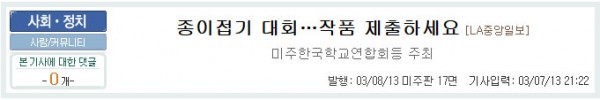 종이접기 대회…작품 제출하세요 [LA중앙일보]